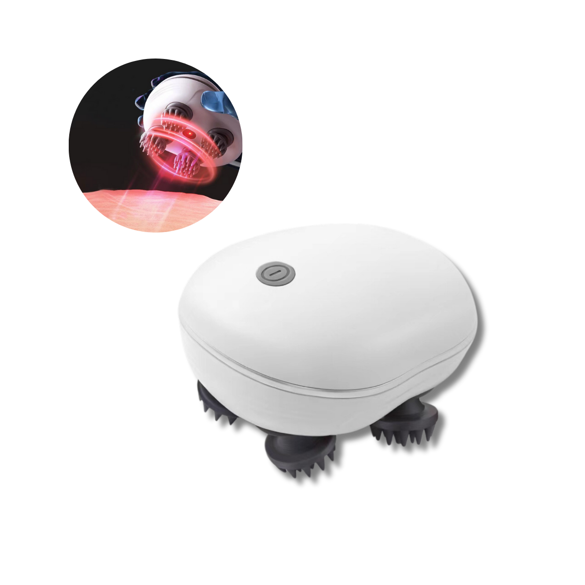 The Electric Scalp Massager massages the scalp, boosting blood flow and encouraging hair growth. The red light enhances these benefits for optimal results.